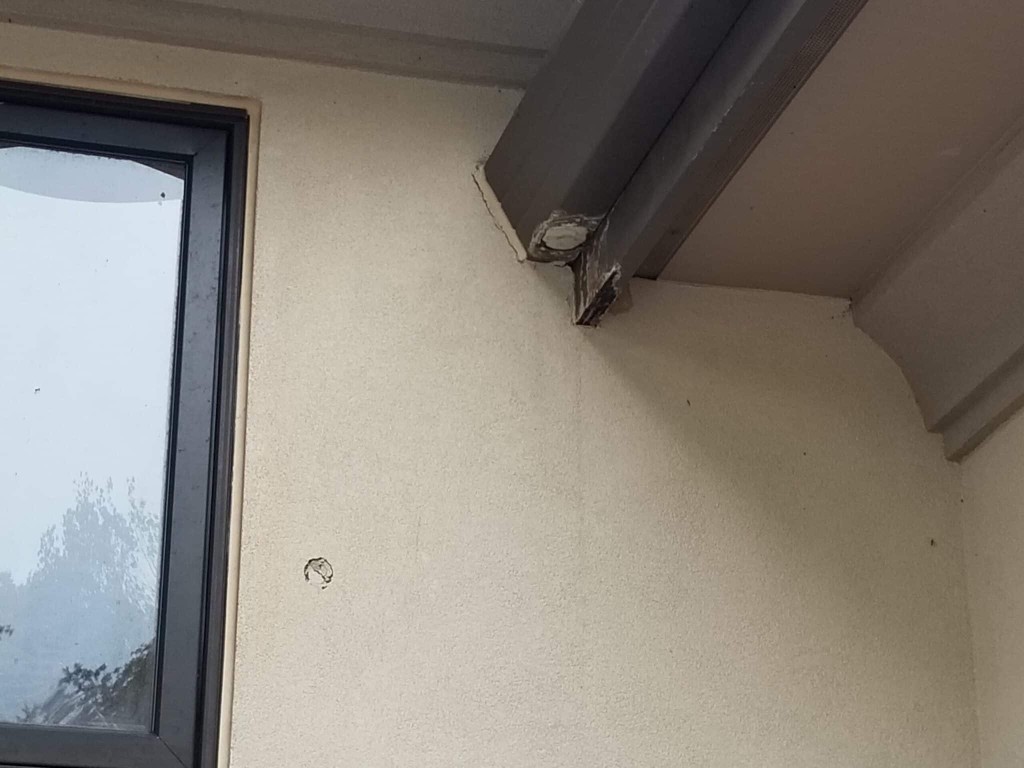 Impact damage to EIFS caused by woodpecker activity and other physical impacts, resulting in compromised finish and potential moisture intrusion.