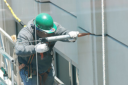 Sealant joints are a major source of problems with EIFS cladding. Incorrect selection or application of sealant (or sealants missing altogether), provides an easy path for water entry and premature deterioration. Inappropriate sealant may even lead to cohesive failure of the EIFS finish coat. Sealant applied to the finish coat instead of the mesh-reinforced base coat is a common source of problems.