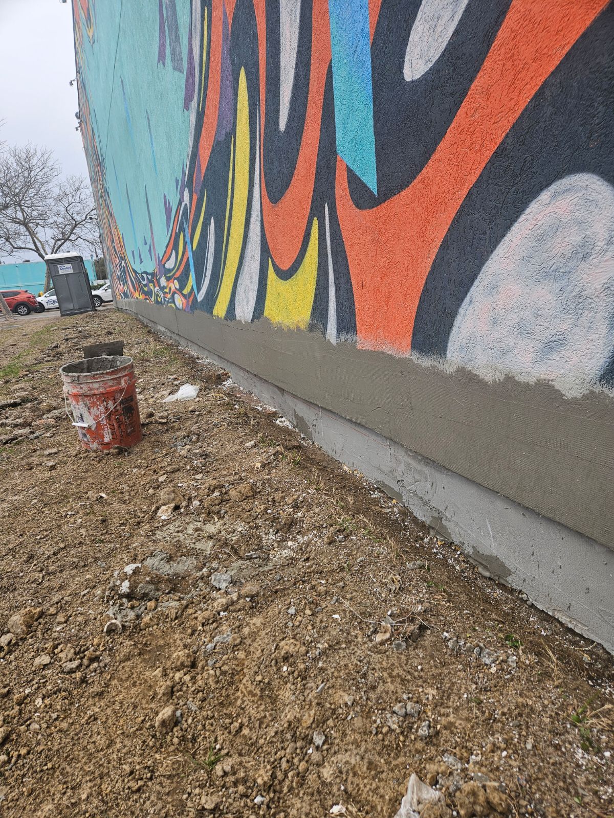 New EPS insulation boards were installed at the proper elevation above grade, maintaining a safe distance from landscaping and lawn areas to prevent wicking or moisture absorption. This not only improved drainage but also extended the life of the wall system. - Basecoat and Reinforcement Layers