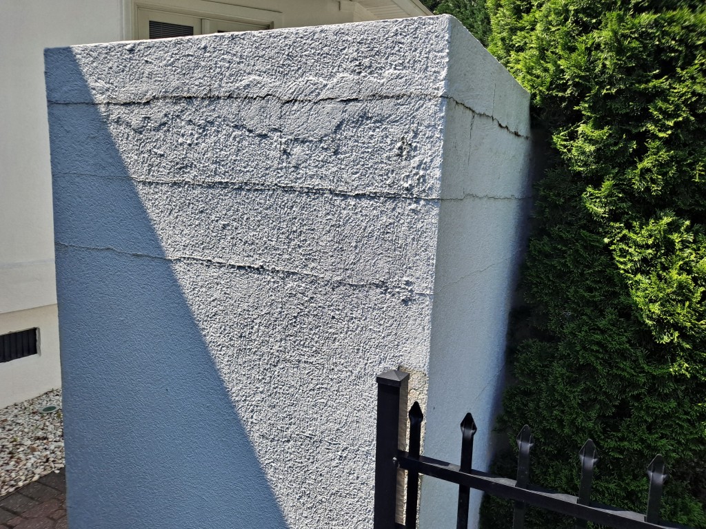 The project involved a long CMU (concrete masonry unit) privacy wall finished with an EIFS‑style textured coating that had started to fail in multiple areas. Property owners were concerned about visible cracking, moisture intrusion, and long‑term durability in the coastal Virginia Beach climate.