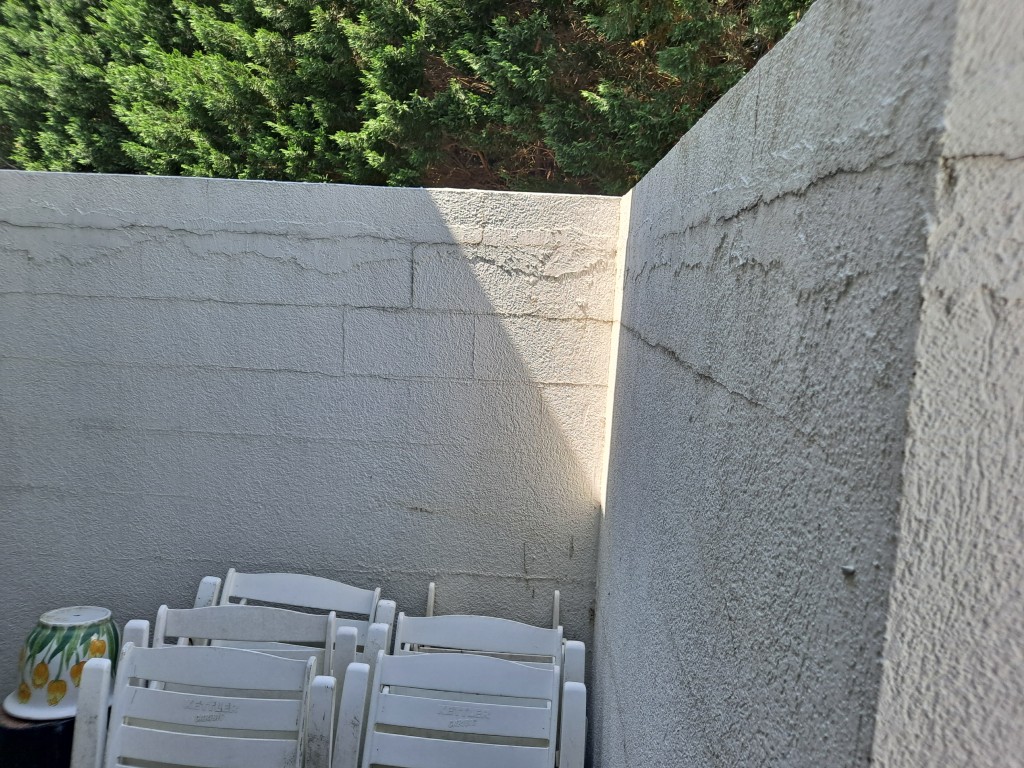 Modern Wall Systems completed a CMU privacy wall restoration in Virginia Beach, VA after significant cracking and moisture damage developed behind an aging textured finish.