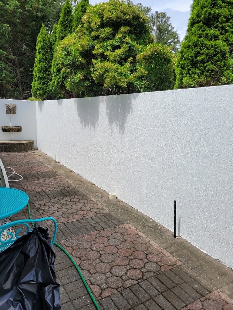 The completed repair created a reinforced, crack‑resistant EIFS lamina over the CMU privacy wall, eliminating visible cracking along mortar joints. Enhanced mesh reinforcement and proper sealant details now provide long‑term moisture protection suitable for Virginia Beach’s coastal environment. The owner gained a clean, uniform, sand‑textured finish with improved durability, curb appeal, and reduced maintenance needs.